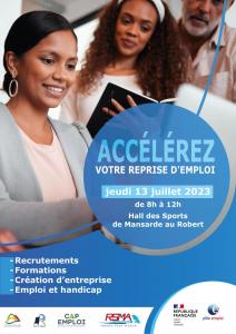 Pôle emploi vous convie à son job dating pour "Accélérez votre reprise d'emplois"le jeudi 13 juillet 2023 de 8h à 12h au Hall des sports de Mansarde au Robert.