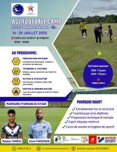L’Association Solidarité de Lestrade, en partenariat avec Sport Xpériences, vous donne rendez-vous du 14 au 25 juillet 2025, de 8h à 16h, au complexe sportif du Robert pour l’ASL FOOTBALL CAMP : un stage intensif de football mixte pour les jeunes du Robert âgés de 8 à 16 ans, parrainé par Myrlaine TARRIEU et Kévin PARSEMAIN.