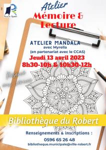 Atelier mémoire et lecture le Jeudi 13 avril 2023 de 8h30-10h et 10h30-12h