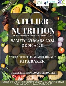 Atelier nutrition avec la nutritionniste Rita Baker de 9h à 12h :