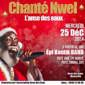 Chanté nwel organisé par l'association l'Anse des Eaux avec le groupe KANTIK BAND à l'Anse des Eaux quartier Mansarde à partir de 16h.