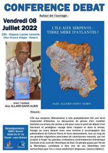 Conférence-débat autour du livre "L'ÎLE AUX SERPENTS : TERRE MERE D'ATLANTES ?" d'Alex Alliard-Saint-Albin en sa présence à 15h à l'espace Lucien Laroche (rue Vincent Allègre).