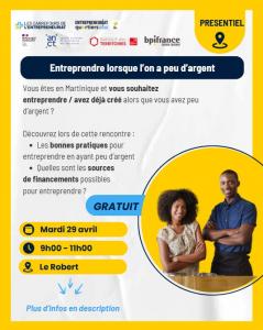 Alors RDV le lundi 29 avril à 9h au Robert pour découvrir “Comment entreprendre lorsque l'on a peu d'argent” !!