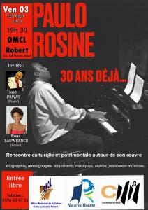 L'Office Municipal de la Culture et des Loisirs du Robert vous invite à sa rencontre culturelle et patrimoniale en hommage à Paulo Rosine, vendredi 3 février 2023 à 19h30.