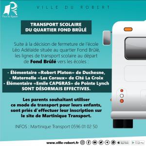 ⚠️ INFO TRANSPORT SCOLAIRE DU QUARTIER FOND BRULÉ ⚠️
