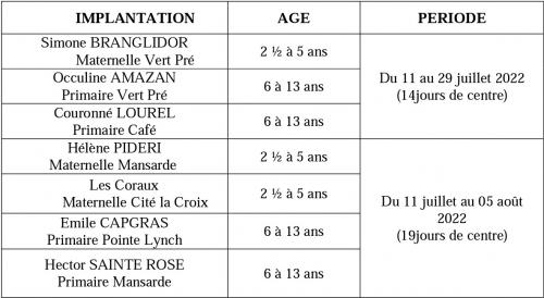Le Maire de la ville du Robert, Président de la Caisse des Ecoles informe les parents de l’organisation des Accueils Loisirs durant les grandes vacances 2022 pour les enfants de 2 ½ ans scolarisés à 13 ans du 11 juillet au 5 août 2022