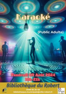 La bibliothèque municipal du Robert vous propose le vendredi 9 août 2024 un karaoké de 18h à 21h à la bibliothèque.