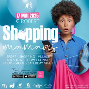 LE SHOPPING DES MAMANS est une manifestation organisée par le service communication de la mairie du Robert le samedi 17 Mai 2025 dédiée aux mamans, alliant sport, shopping en profitant des offres des boutiques, gourmandise, artisanat, talk show, plaisir gustatif, mode et musique !
