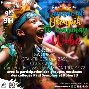 animée par 12 écoles, GWOUP231, OTANTIK GERIKAN BASS, Chars sonorisés, Camions de l'association MADA TRUCK 972 et la participation des groupes musicaux des collèges Paul Symphor et Robert 3