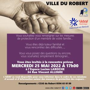 L’UDAF vous invite à sa réunion d'information collective pour tuteurs familiaux Mercredi 25 Mai 2022 à 17h00, à l’Espace Lucien LAROCHE.