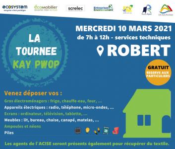 Afin de sensibiliser les administrés à l'importance du tri et aux solutions existantes sur le territoire, l'association Entreprises & Environnement a mis en place La "TOURNEE KAY PWOP" s'arrête Mercredi 10 mars 2021 de 7h à 12h aux services techniques de la ville du Robert.