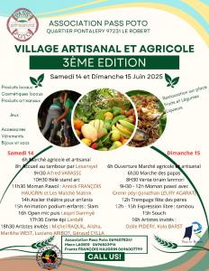 Venez assister à la troisième édition du Grand village artisanal & agricole organisé par l'association "Pass Poto" sur le terrain de Pontaléry au Robert le Samedi 14 et le Dimanche 15 Juin 2025.