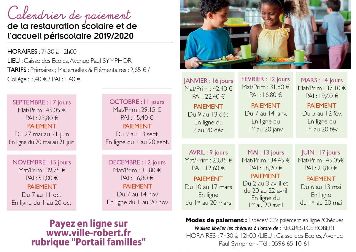Le Maire, Président de la Caisse des Ecoles, informe les parents, conformément à la règlementation de la régie* et aux directives du Trésor Public de Trinité, qu’ils sont tenus de respecter scrupuleusement le calendrier de paiement préétabli. Ainsi, à compter du 1er novembre 2019, le délai de paiement passé, aucun encaissement ne sera possible par la régie de recettes de l’établissement. En effet, un titre de recettes exécutoire sera alors émis, chaque fin de mois, pour la période facturée, et les débiteurs devront s’acquitter de leurs dettes auprès du comptable assignataire, à la trésorerie de Trinité. La Caisse des Ecoles ne pourra, en aucun cas accorder de délai supplémentaire de paiement.