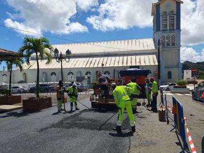 Depuis le lundi 27 fevrier 2023, les agents de l'équipe du service émulsion des services techniques de la ville du Robert, s'affairent pour la réfection du parking du bourg (place Abbé Morland). Fin des travaux : Mardi 28 Février 2023.