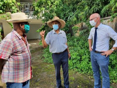 Suite aux pluies diluviennes du 9 novembre, certains quartiers au Robert ont été fortement impactés par des dégâts. Cet après-midi [mardi 24 novembre 2020] le Préfet Stanislas Cazelles a visité les quartiers de Chère Epice, Bois Désir et Augrain. Le maire Alfred Monthieux et les élus présents, ont pu échanger sur les travaux et démarches nécessaires à entreprendre sur lesquels un accompagnement de l'état sera nécessaire.