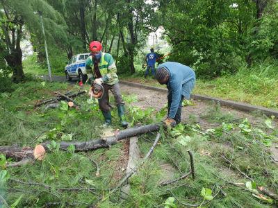 Par mesure de sécurité, le maire de la ville du Robert Alfred Monthieux a sollicité ses services municipaux pour l'élagage des arbres au niveau de la passerelle de l'entrée du bourg. Nous avons rencontré une résidente du quartier Moulin à Vent pendant les travaux.