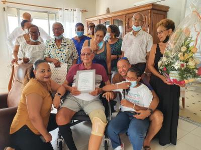 Joyeux anniversaire à Monsieur MONTLOUIS FÉLICITÉ Maurille, Maurice né le 13 septembre 1921. Il a eu 8 enfants et était marin-pêcheur bien connu des robertins et réside au boulevard Henri Auzé au bord de mer. Ce lundi 13 septembre 2021, le Maire de la ville du Robert Alfred Monthieux accompagné d'une délégation du CCAS s'est rendu à son domicile ce matin pour lui offrir quelques présents au nom de l'ensemble du conseil municipal.
